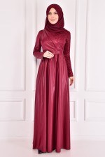 Stamp Detail Dress Burgundy ASM12361