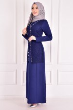 İnci Detay Elbise İndigo ASM2389