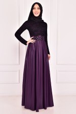 Dantel Detay Abiye Elbise Mürdüm ASM2133