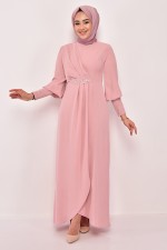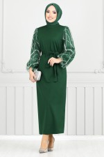 Kolları Simli Tesettür Abiye 5601END900-M Zümrüt