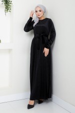 Pile Detaylı Kadife Elbise 2012EFY931-M Siyah