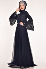 Taş Detaylı Dantel Abiye Elbise Lacivert ASM2167