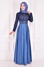 Dantel Detay Abiye Elbise Mavi ASM2133