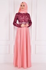 Dantel Detay Abiye Elbise Mor ASM2133