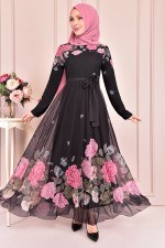 Şifon Elbise Siyah KBR21314
