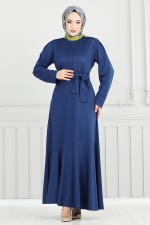 Nervür Detaylı Kemerli Elbise 4054PM1063-M İndigo