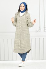 Kapşonlu Ekose Tunik 4000KTR927-M Nefti Yeşili