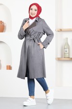 Yakası Bağcıklı Pardesü Ferace 0132HMY948-M Petrol