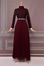 Taşlı Payet Abiye Mürdüm KBR10001