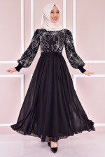 Şifon Elbise Siyah 03 NEV14674