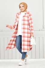 Kapşonlu Ekose Tunik 4000KTR927-M Oranj