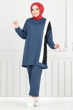 Şerit Detaylı Tesettür Takım 9114PL940-M İndigo