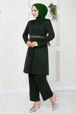 Drape Detaylı Tesettür Takım 5028SL890-M Zümrüt