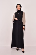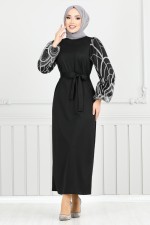 Kolları Simli Tesettür Abiye 5601END900-M Siyah