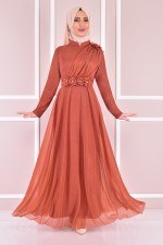 Şifon Detay Abiye Gül Kurusu ASM22650