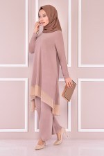 Şifon Detaylı Pantolonlu İkili Takım Bej EFY3838