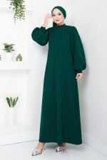 Balon Kollu Tesettür Abiye 5527END900-M Zümrüt