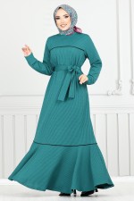 Biye Detaylı Kışlık Elbise 4025PM1063-M Petrol
