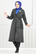 Çizgi Detaylı Uzun Kaban 319EVO1065-M Siyah
