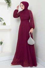 Kolları İşlemeli Abiye 6089LPN909-M Mürdüm