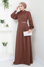 Taş Detaylı Tesettür Abiye 271DVL897-M Kahve