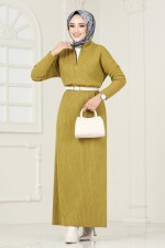 Yarım Fermuarlı Triko Elbise 6027KL1035-M Yağ Yeşili