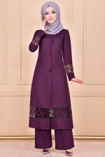 Düğmeli Tunik Kombin Mürdüm ASM2057