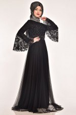 Taş Detaylı Dantel Abiye Elbise Siyah ASM2167