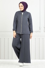 Önden Fermuarlı Modal Kumaş Takım 5699ZNK903-M Antrasit