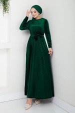 Pile Detaylı Kadife Elbise 2012EFY931-M Zümrüt