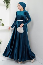 Taş Kemerli Kadife Abiye 2013EFY931-M Petrol