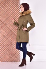 Kapüşonlu Kaban Haki VTN40681