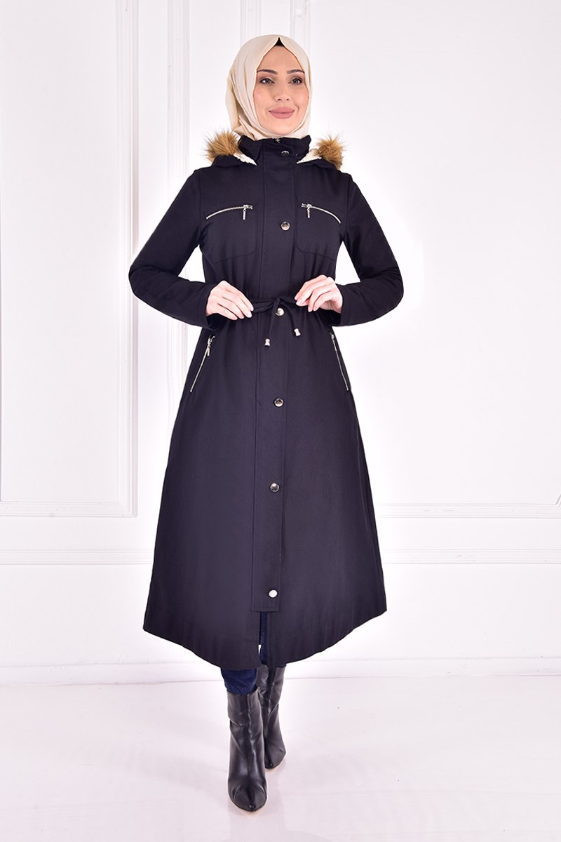 Kapüşonlu Kaban Siyah TKN3376