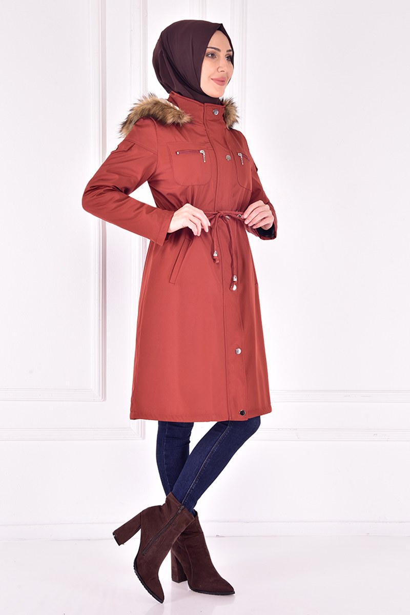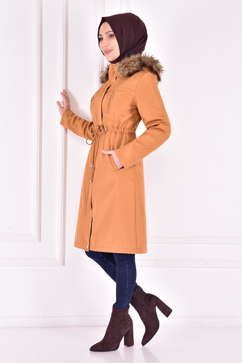 Kapüşonlu Kaban Hardal TKN3359