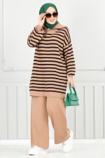 Çizgili Triko İkili Takım 5003KLN1035-M Latte