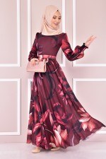 Desenli Elbise Bordo ASM22661