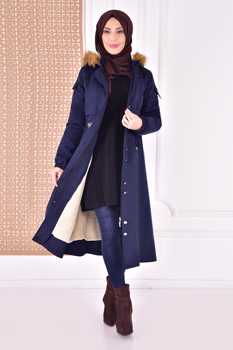 Kapüşonlu Kaban Lacivert ANT22560