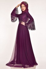 Taş Detaylı Dantel Abiye Elbise Mürdüm ASM2167