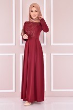 Desenli Elbise Bordo ASM2333