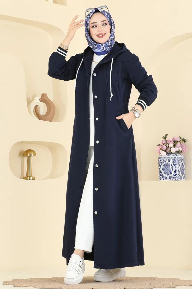 Ürün Detayları: Tesettür giyim için yeni sezon ürünüdür. Yaka bağcığı fonksiyoneldir. Kapüşonlu yaka tasarımı mevcuttur. Ön kısmı düğmeli tasarıma sahiptir. Astar içermemektedir. Kapüşon tamamıyla sabittir. Cepler kullanışlıdır.Ürün renginde çekimler nedeniyle küçük farklılıklar olabilir.