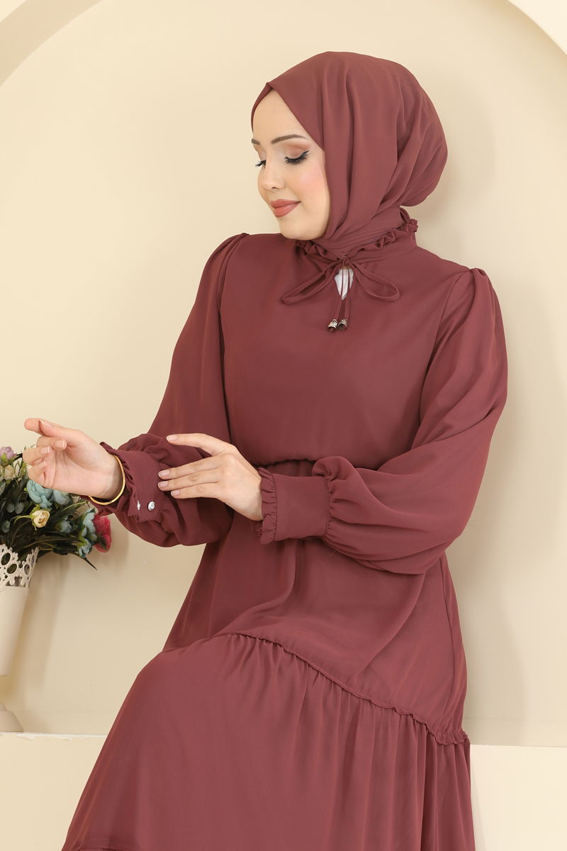 Yaka Bağcıklı Şifon Elbise 6268BSK463-MS Bakır