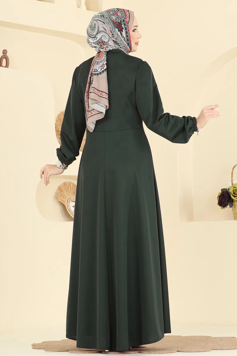 Yakası Bağcıklı Tesettür Ferace 2483SL432-MS Zümrüt