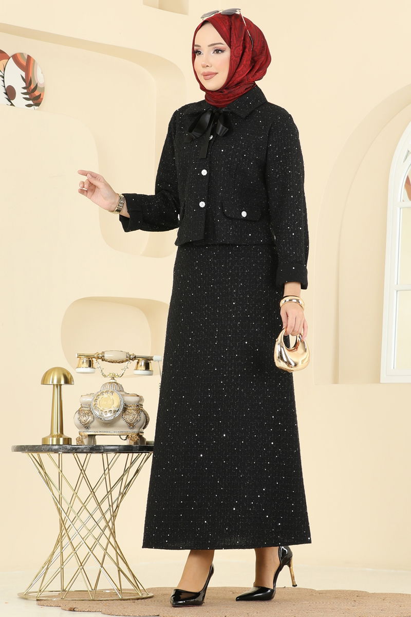 Yakası Bağcıklı Tüvit Takım 2759SL432-MS Siyah
