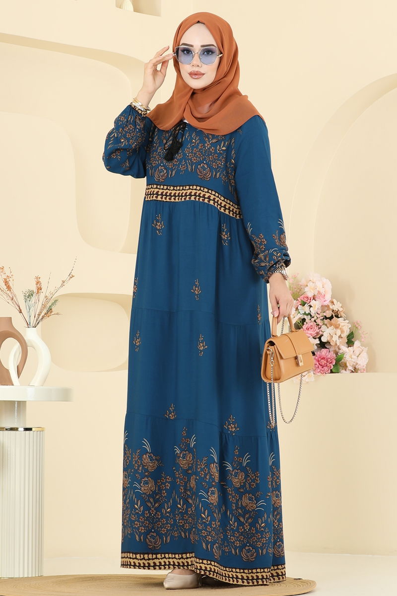 Petrol rengindeki bu bağcıklı viskon elbise, her mevsim rahatlıkla tercih edebileceğiniz bir tesettür elbisedir. Hafif ve rahat viskon kumaşı, V yaka tasarımı ile zarafetinizi artırır, lastikli manşetler ise kullanışlılığı ön plana çıkarır. Elbise, 30 derecede hassas yıkama ile temizlenebilir ve astarsız yapısı sayesinde hafifliği devam eder. Erbilen 40 beden olan bu model, farklı beden alternatifleriyle sunulmaktadır.