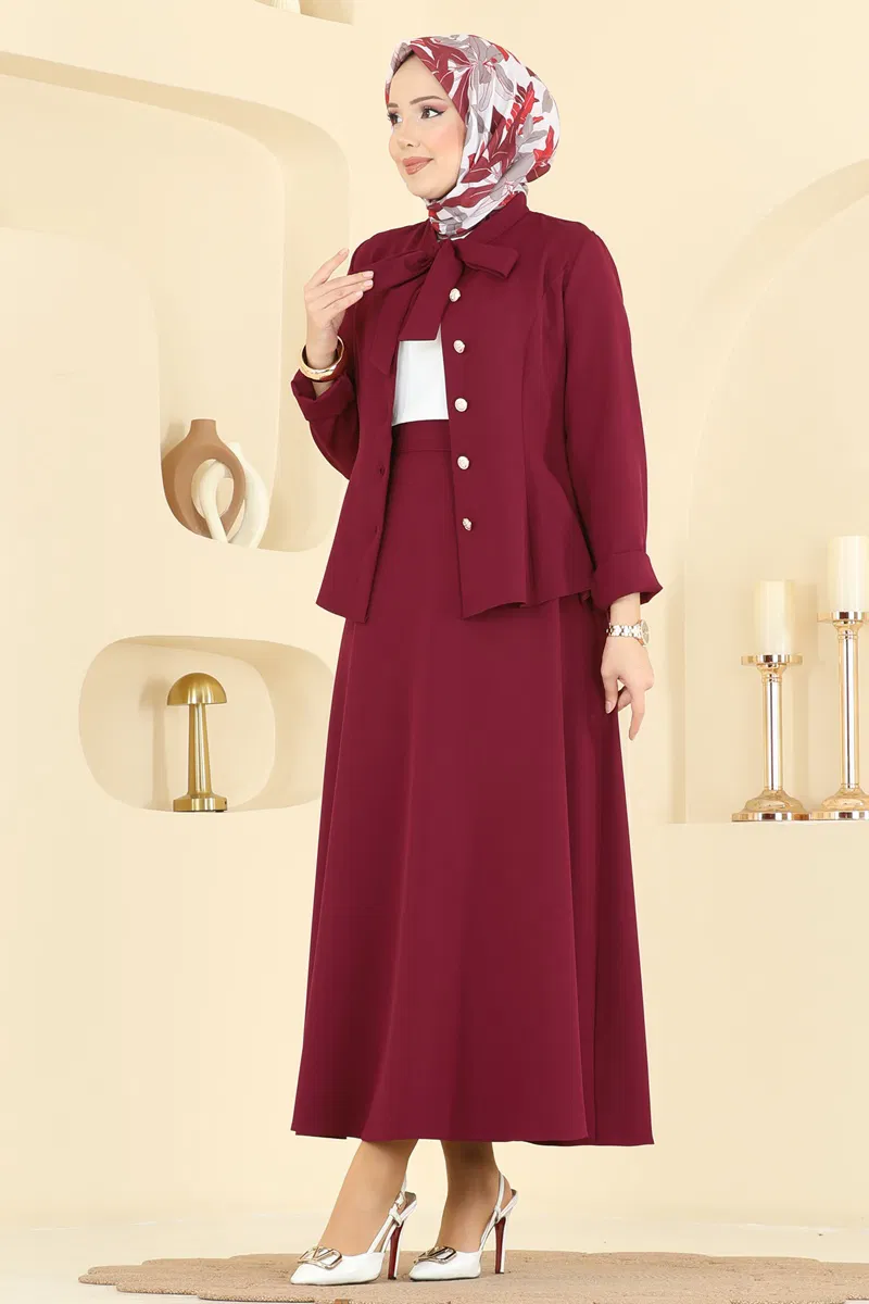Yakası Bağlamalı Dabıl Takım 2799SL432-MS Bordo