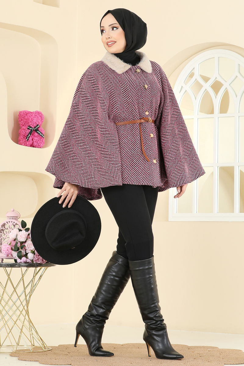 Yakası Kürk Detaylı Panço 5333NFC1010-MS Pembe
