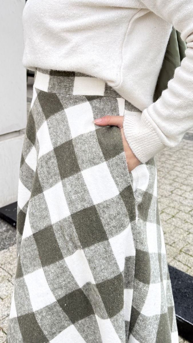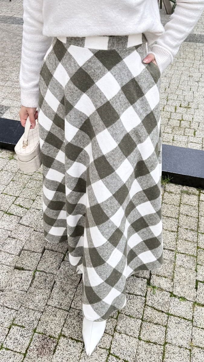 Ekose Desenli Haki Etek - Yan Cepli Model