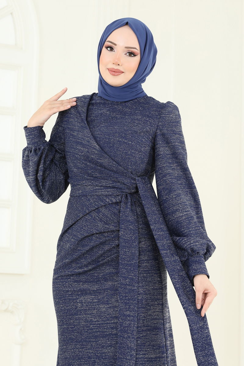 Yandan Bağcıklı Abiye Elbise 2807ASMK1074-MS İndigo