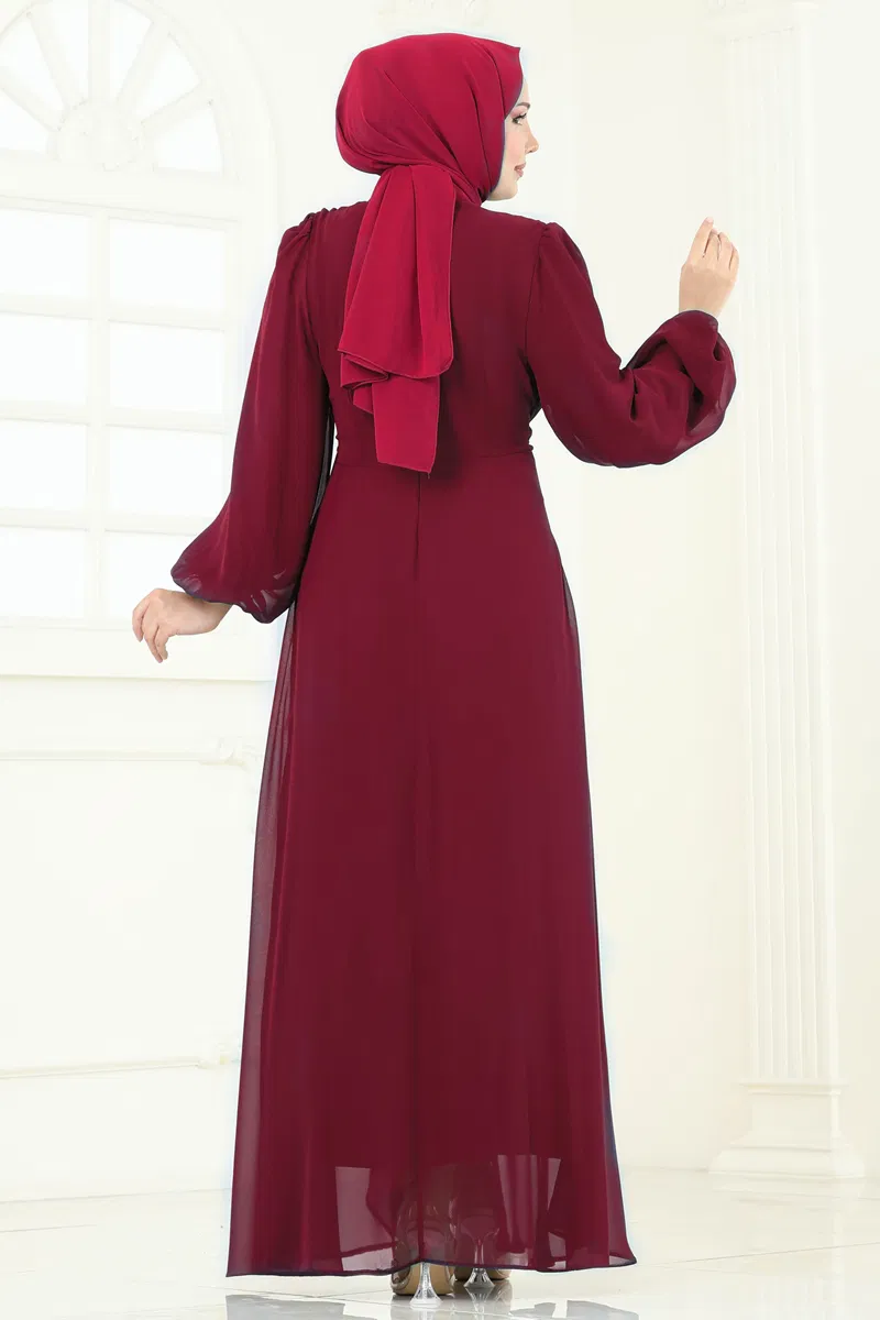 Açık Bordo Yandan Kemerli Şifon Abiye