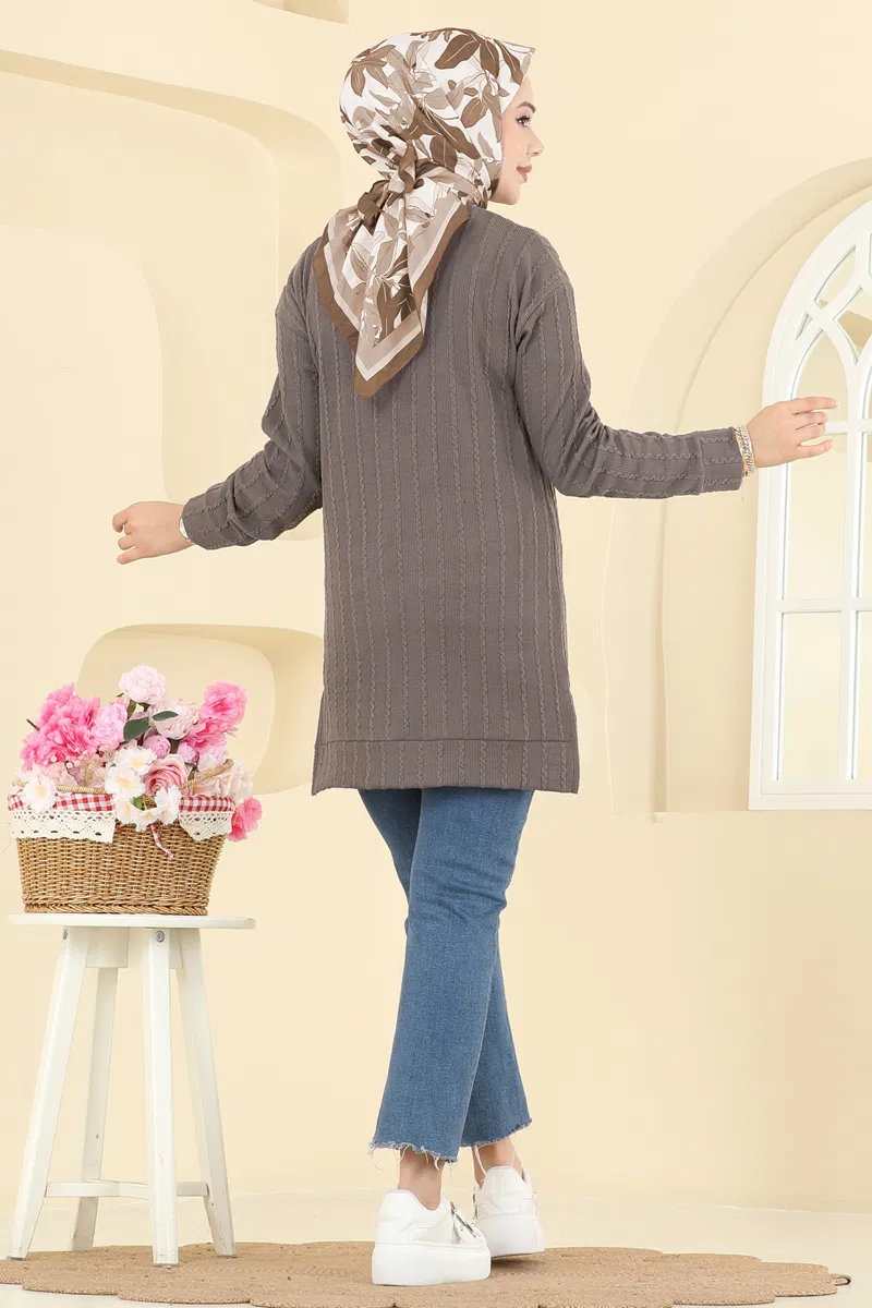 Yandan Yırtmaçlı Bürümcük Tunik 190BO429-MS Koyu Vizyon
